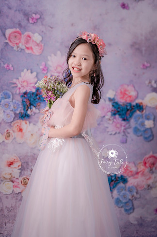 以粉紫色花花世界作為主題,配合各種色彩繽紛公主裙~